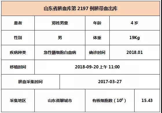 2018年9月21日上午11:00,18歲何姓少年因患急性髓細胞白血病,在河北某三甲醫院接受臍帶血移植,參與本次移植的臍帶血與患者4/6位點相合,有核細胞數為16.45*10^8。整個輸注過程很順利,無不良反應,愿患者早日恢復健康。