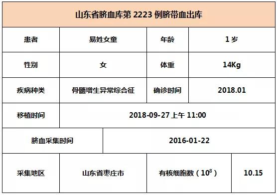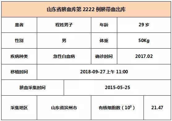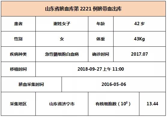 【出庫病例】山東省臍血庫第2221-2223例臍帶血出庫