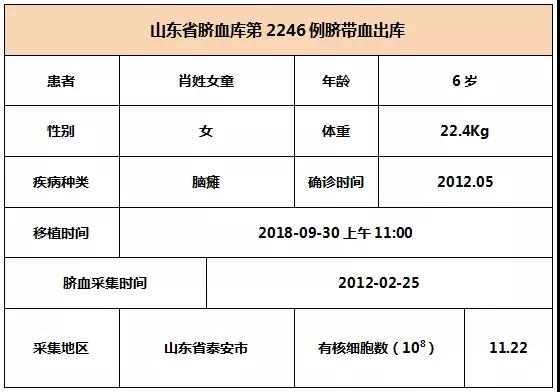2018年9月30日上午11:00,6歲肖姓女童因患腦癱,在廣州某三甲醫(yī)院接受自體臍帶血移植,參與本次移植的臍帶血與患者10/10位點(diǎn)相合,有核細(xì)胞數(shù)為11.22*10^8。整個(gè)輸注過(guò)程很順利,無(wú)不良反應(yīng),愿患者早日恢復(fù)健康。