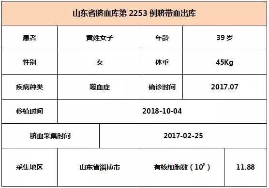 【出庫病例】山東省臍血庫第2251-2253例臍帶血出庫