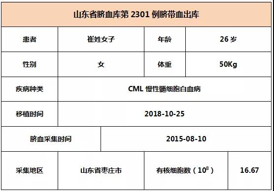 2018年10月25日,26歲崔姓女子因患CML慢性髓細(xì)胞白血病,在河北某三甲醫(yī)院接受臍帶血移植,本次移植的臍帶血與患者5/10位點(diǎn)相合,有核細(xì)胞數(shù)為16.67*10^8。整個(gè)輸注過(guò)程很順利,無(wú)不良反應(yīng),愿患者早日恢復(fù)健康。
