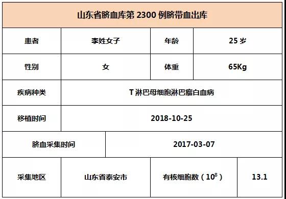 2018年10月25日,25歲李姓女子因患T淋巴母細(xì)胞淋巴瘤白血病,在北京某三甲醫(yī)院接受臍帶血移植,本次移植的臍帶血與患者5/10位點(diǎn)相合,有核細(xì)胞數(shù)為13.1*10^8。整個(gè)輸注過(guò)程很順利,無(wú)不良反應(yīng),愿患者早日恢復(fù)健康。